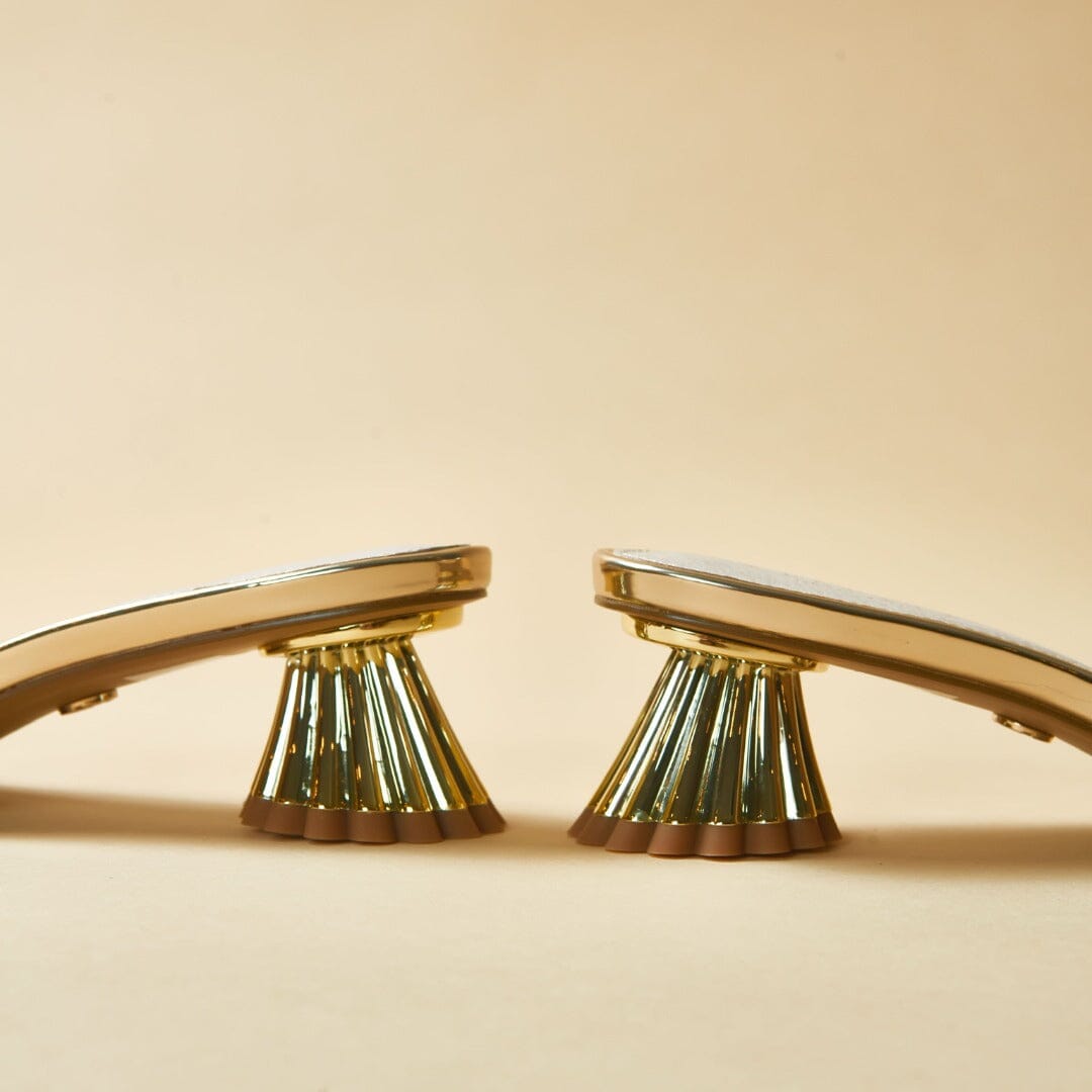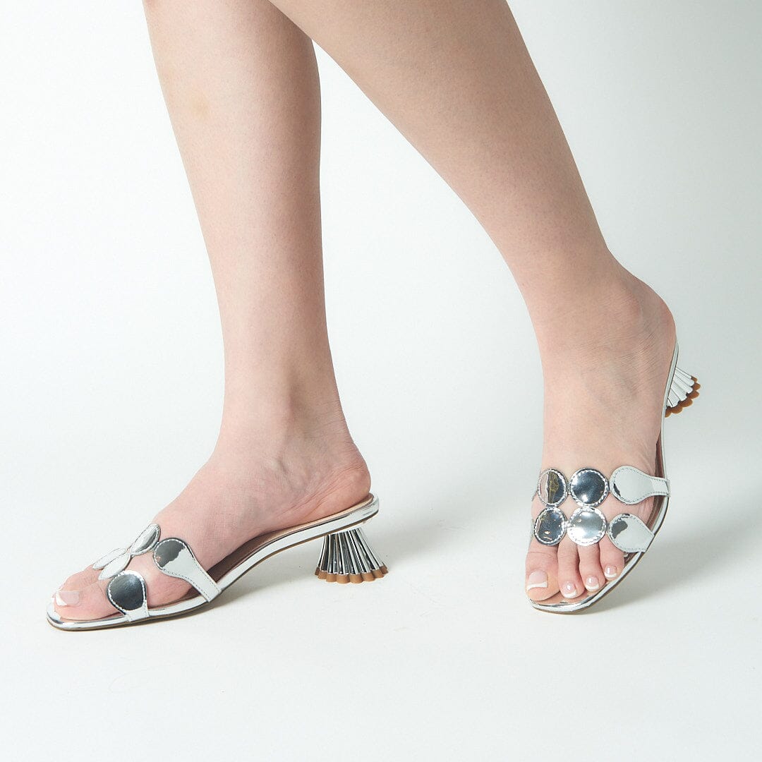 This Metallic Kitten Heel with circle toe strap and a funky heel are sure to be comfortable and stylish dress up or down.