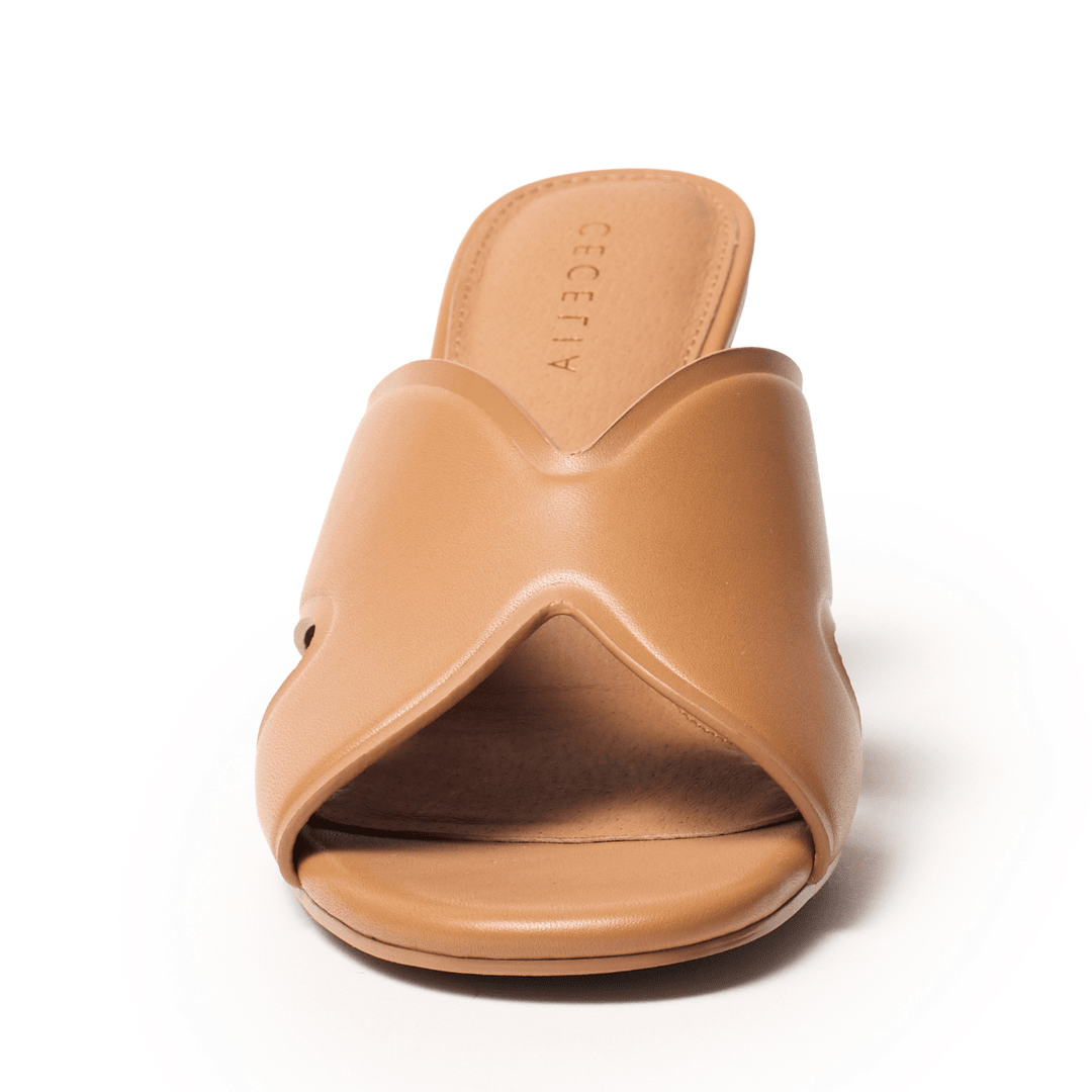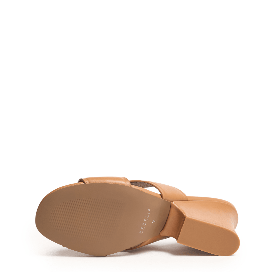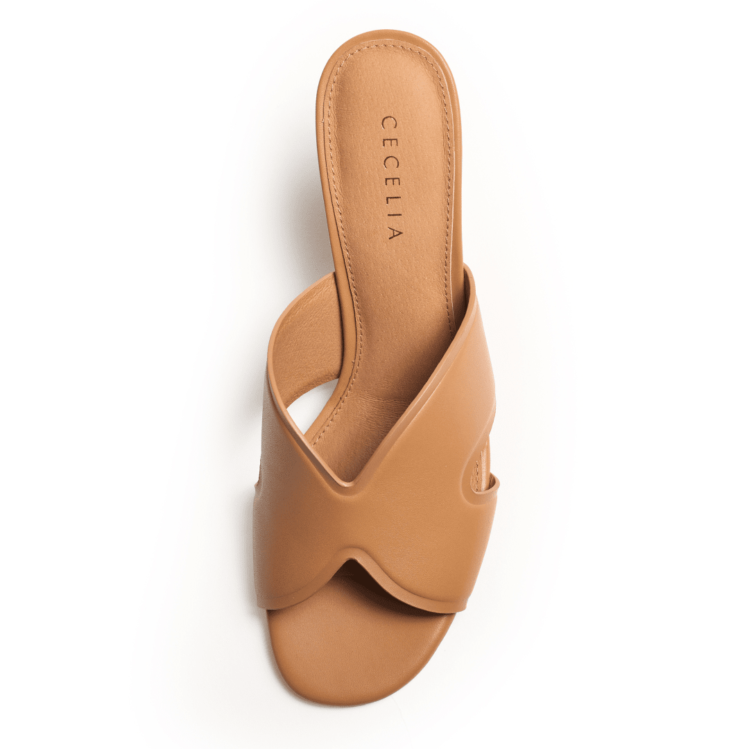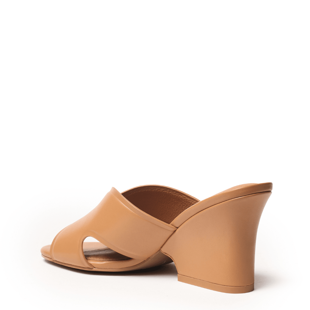 Clean lines and confident height define this modern wedge slide, designed for effortless sophistication. Wide crisscross leather straps create a sleek, minimalist silhouette that feels refined and versatile, making it an easy choice for elevated everyday dressing.