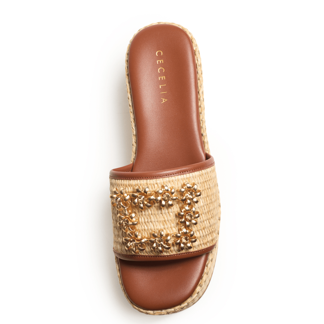 The warm, natural textures pair beautifully with flowing dresses, linen sets, and casual denim, making this slide a versatile choice for vacations, resort wear, and everyday warm-weather styling. Relaxed yet elevated, it is the perfect blend of laid-back ease and distinctive design.