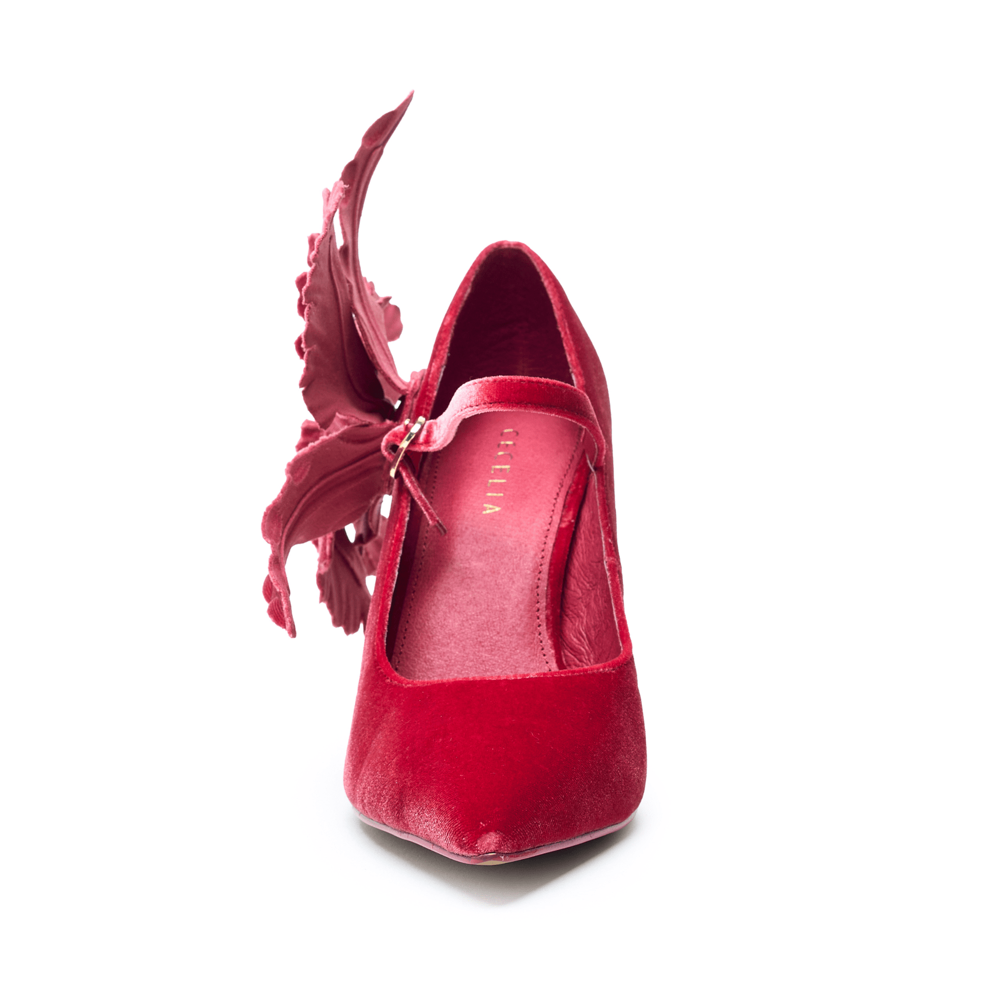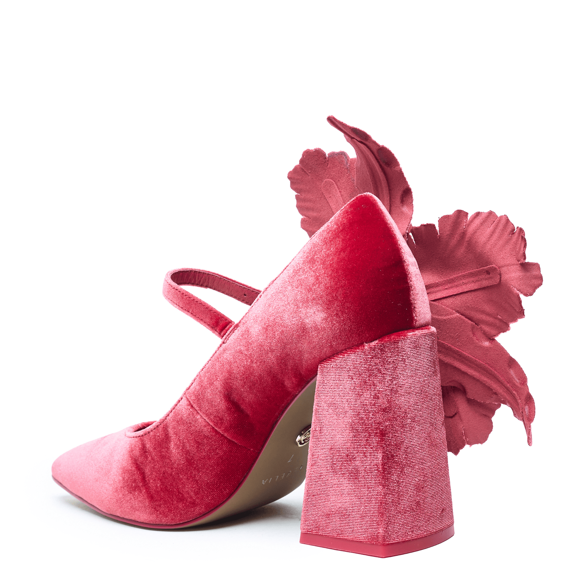 Where art meets attitude, this statement block heel stuns with its dramatic velvet bloom. Designed for women who lead with boldness, beauty, and edge.