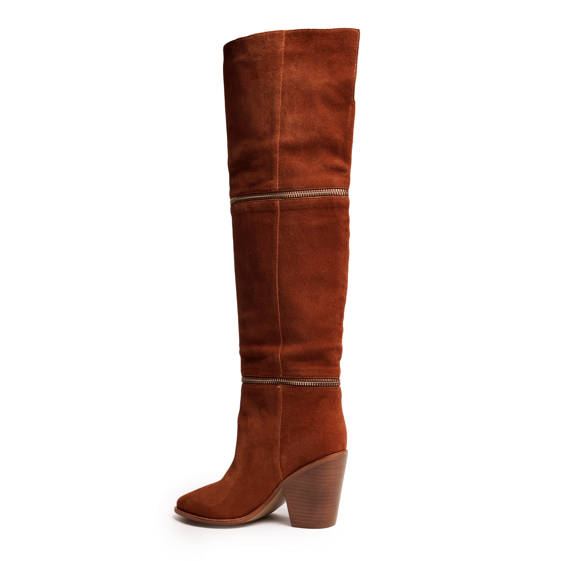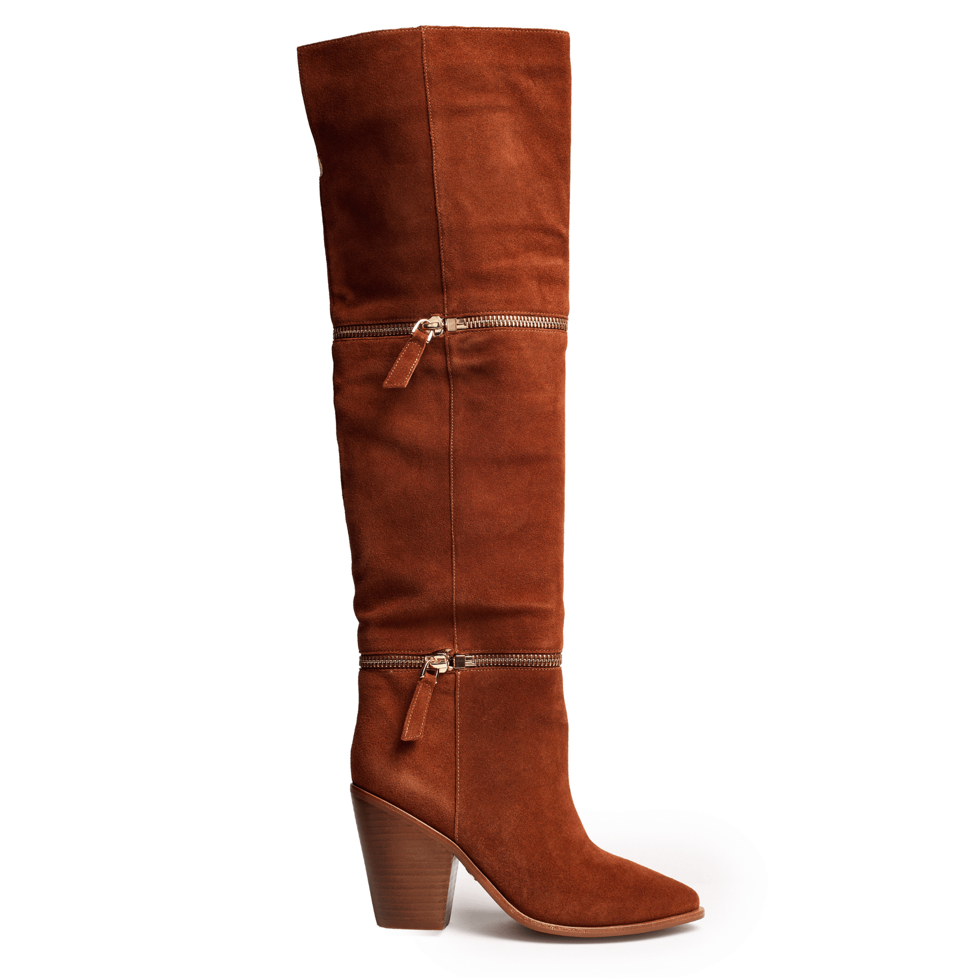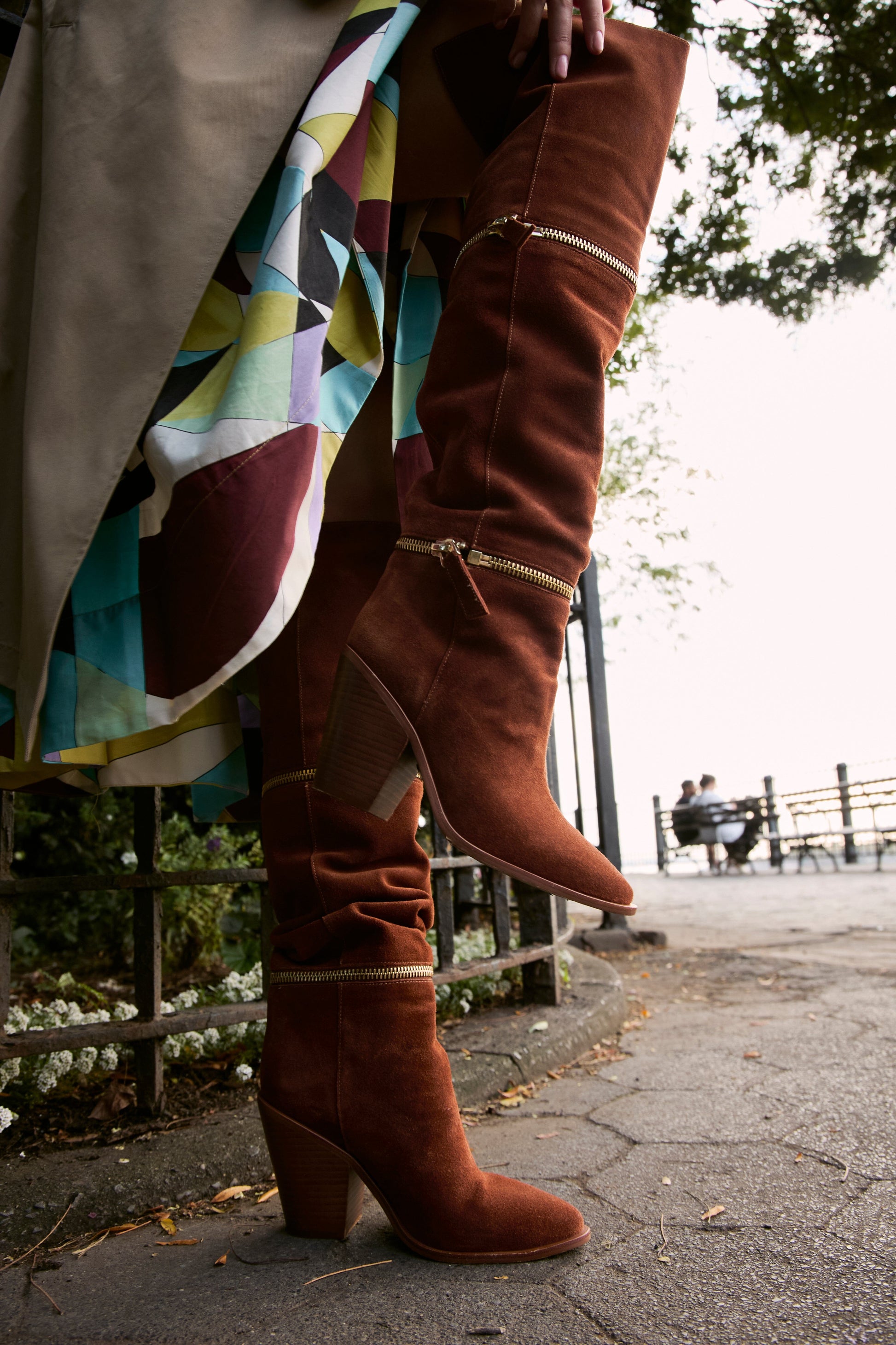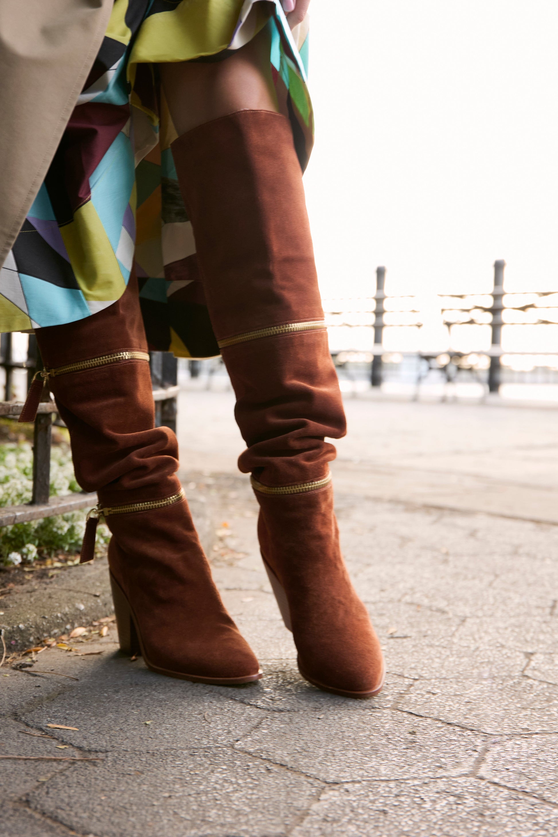 Our over the knee-high suede boots feature a chic pointed toe and a durable block heel, creating the perfect blend of style and functionality. With zipper detail you'll love the convenience of this elegant piece.