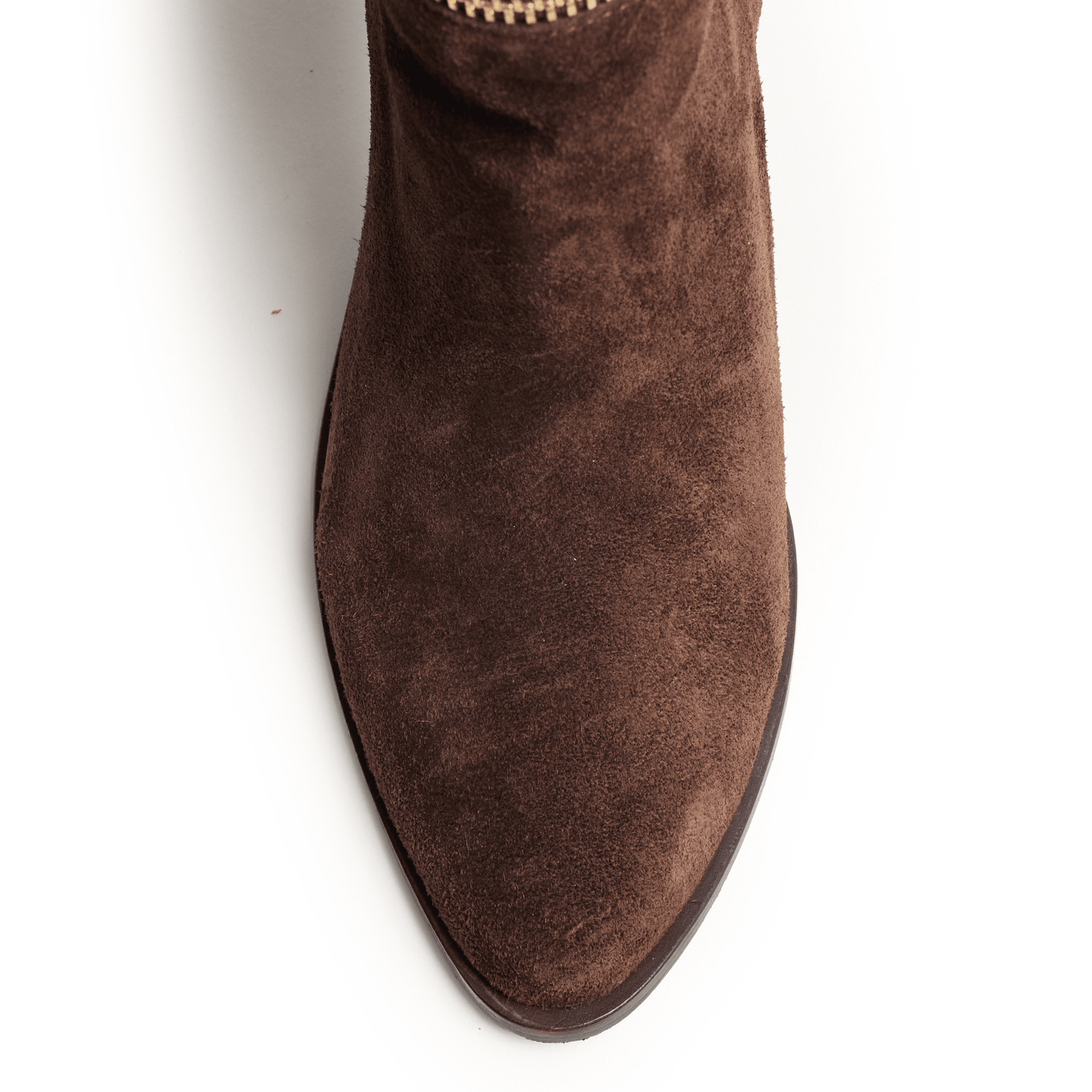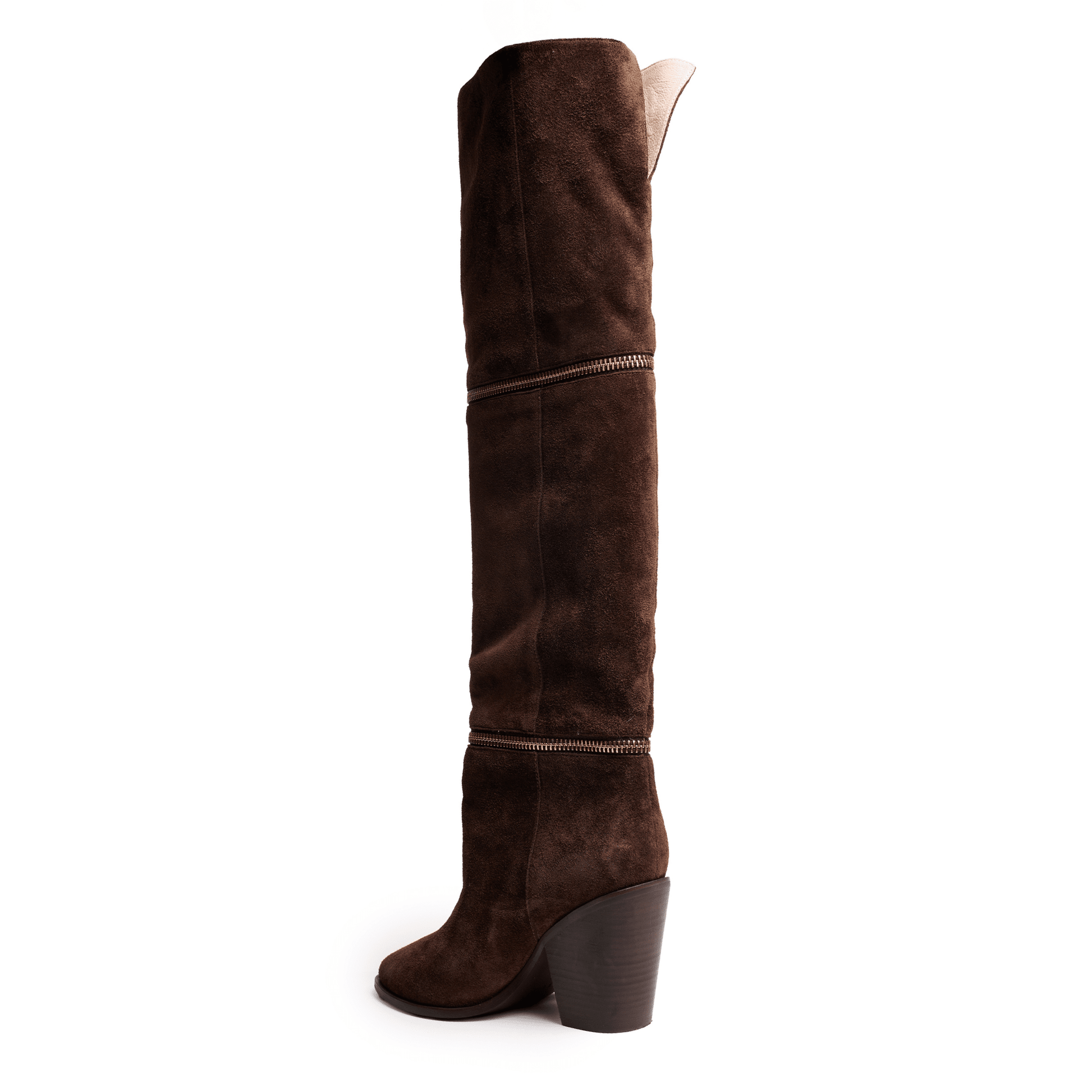 Our over the knee-high suede boots feature a chic pointed toe and a durable block heel, creating the perfect blend of style and functionality. With zipper detail you'll love the convenience of this elegant piece.