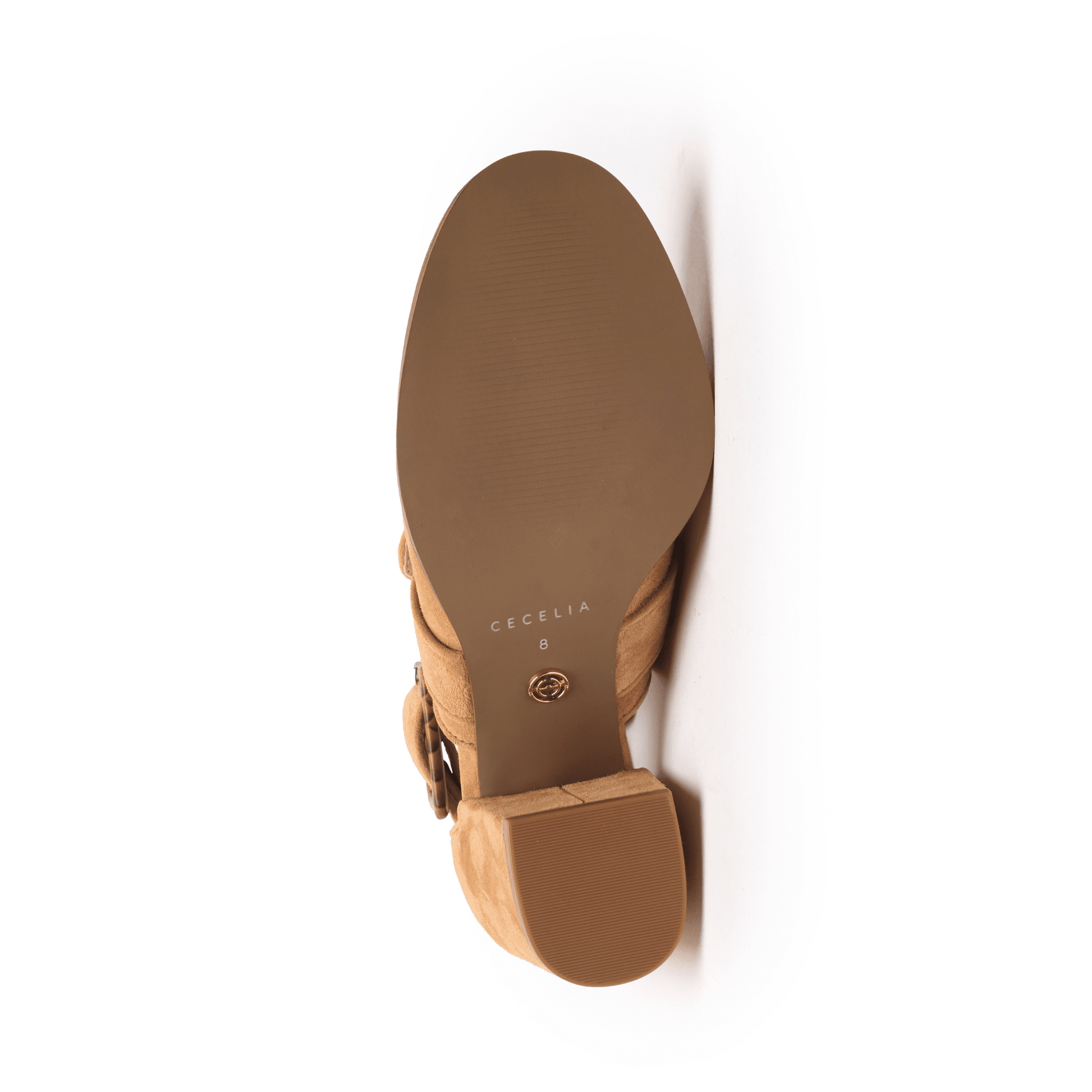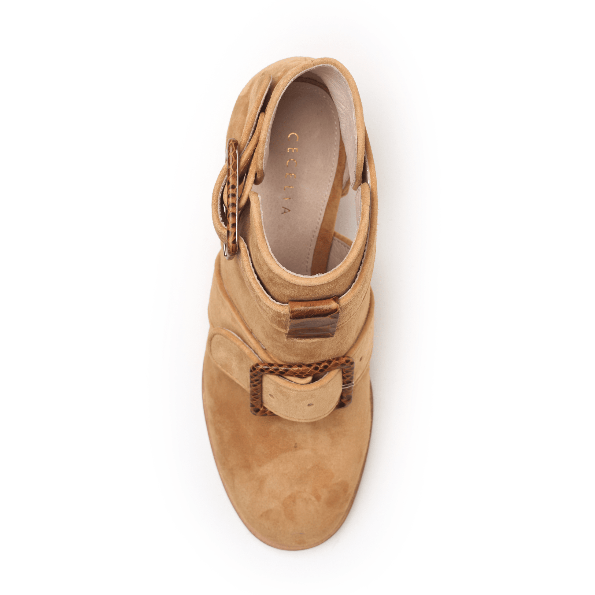 Buckle up for a fun night in this striking Suede cutout boot, highlighted by snake leather hardware and wide straps. A low block heel and a round toe make for street-chic style.