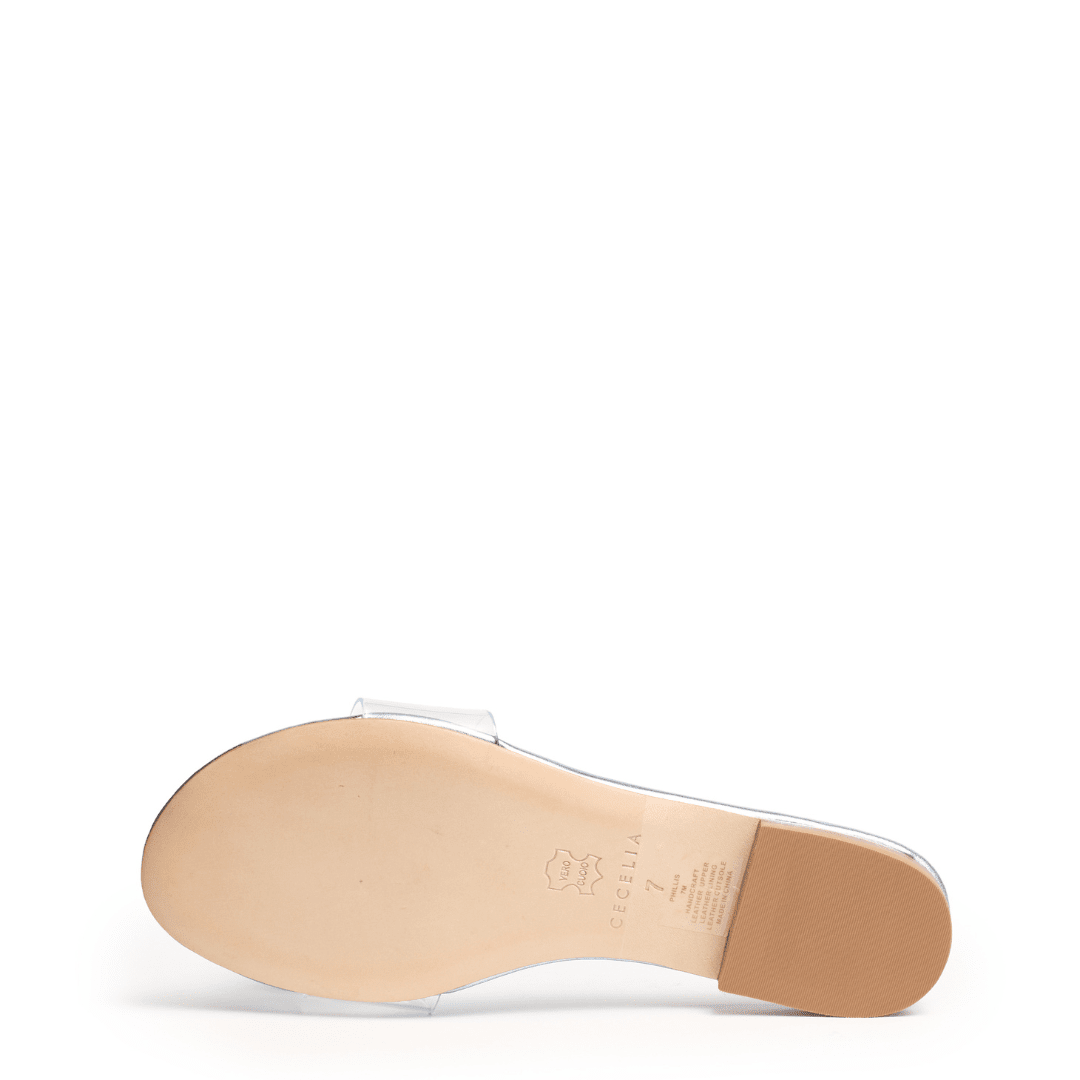 The minimalist design allows the statement detail to shine, while the streamlined shape offers versatile styling that moves seamlessly from daytime events to evening gatherings. A slender strap secures the foot with barely-there elegance, enhancing the sandal’s modern, polished appeal.