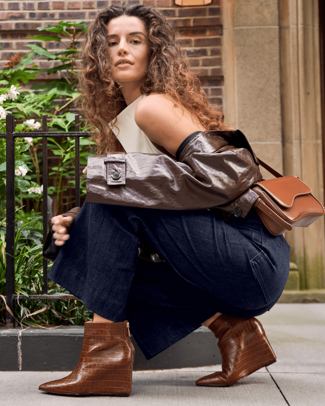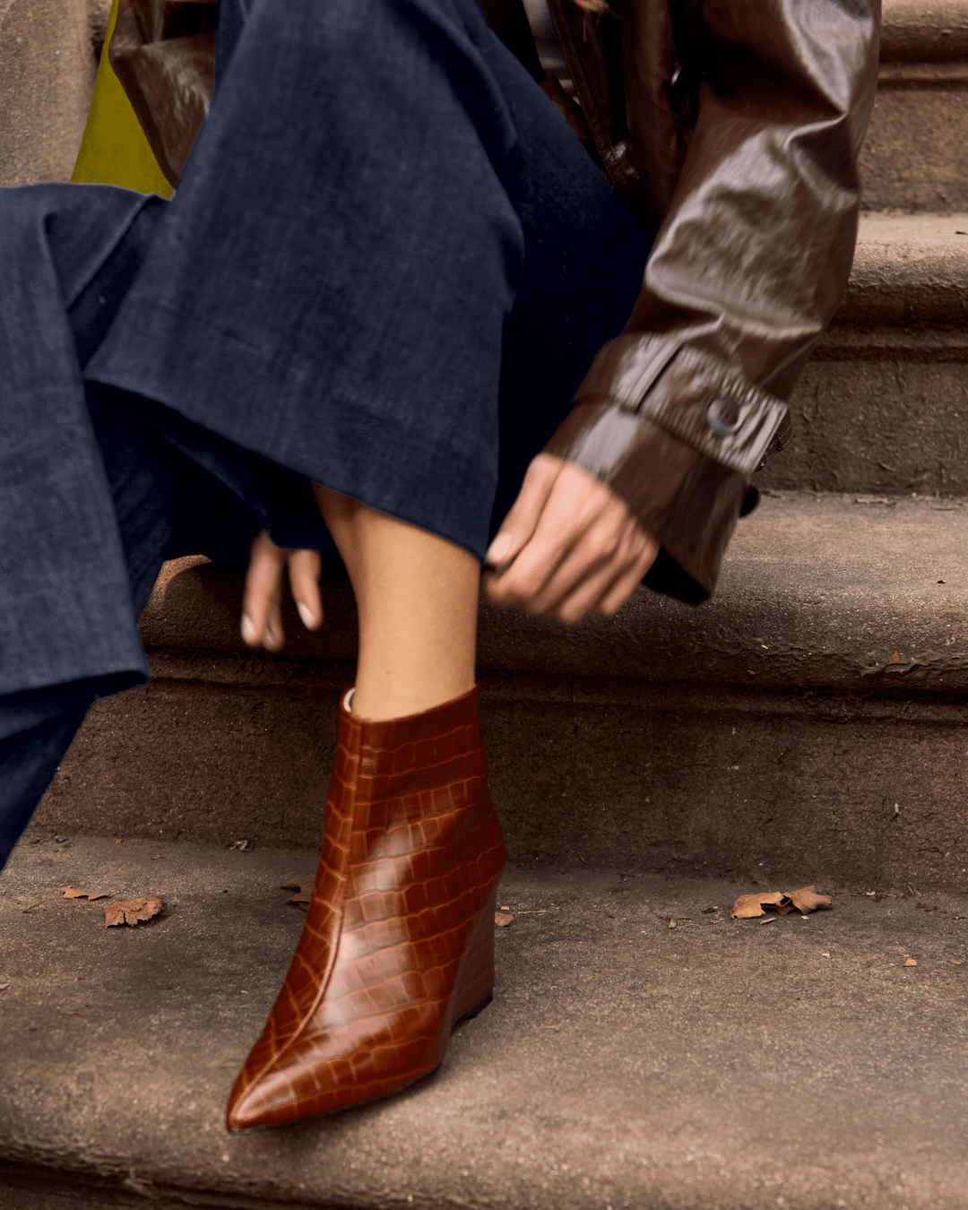 Strong lines meet a soft finish in this versatile ankle boot, featuring a covered wedge heel. It's the kind of piece that quietly makes an outfit.