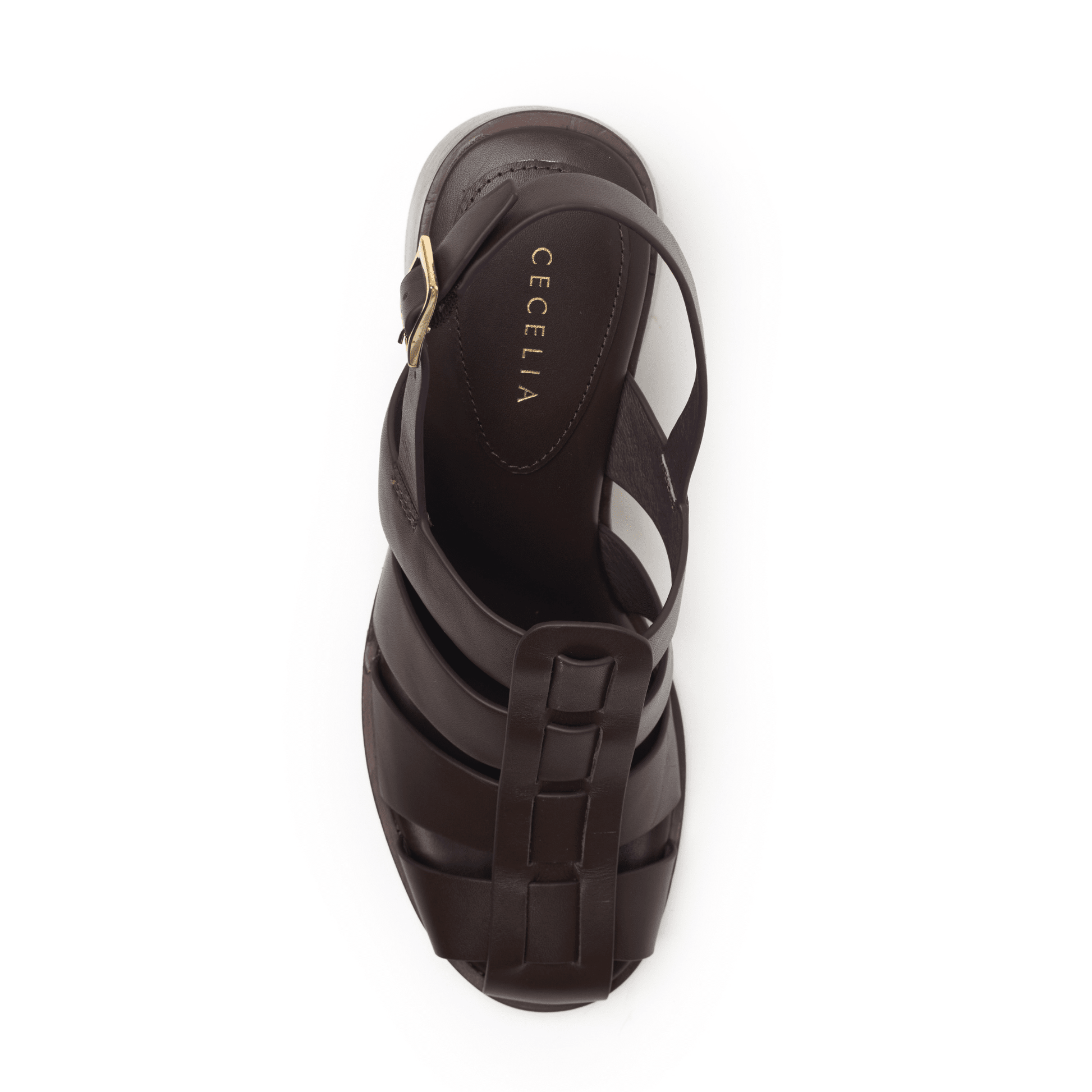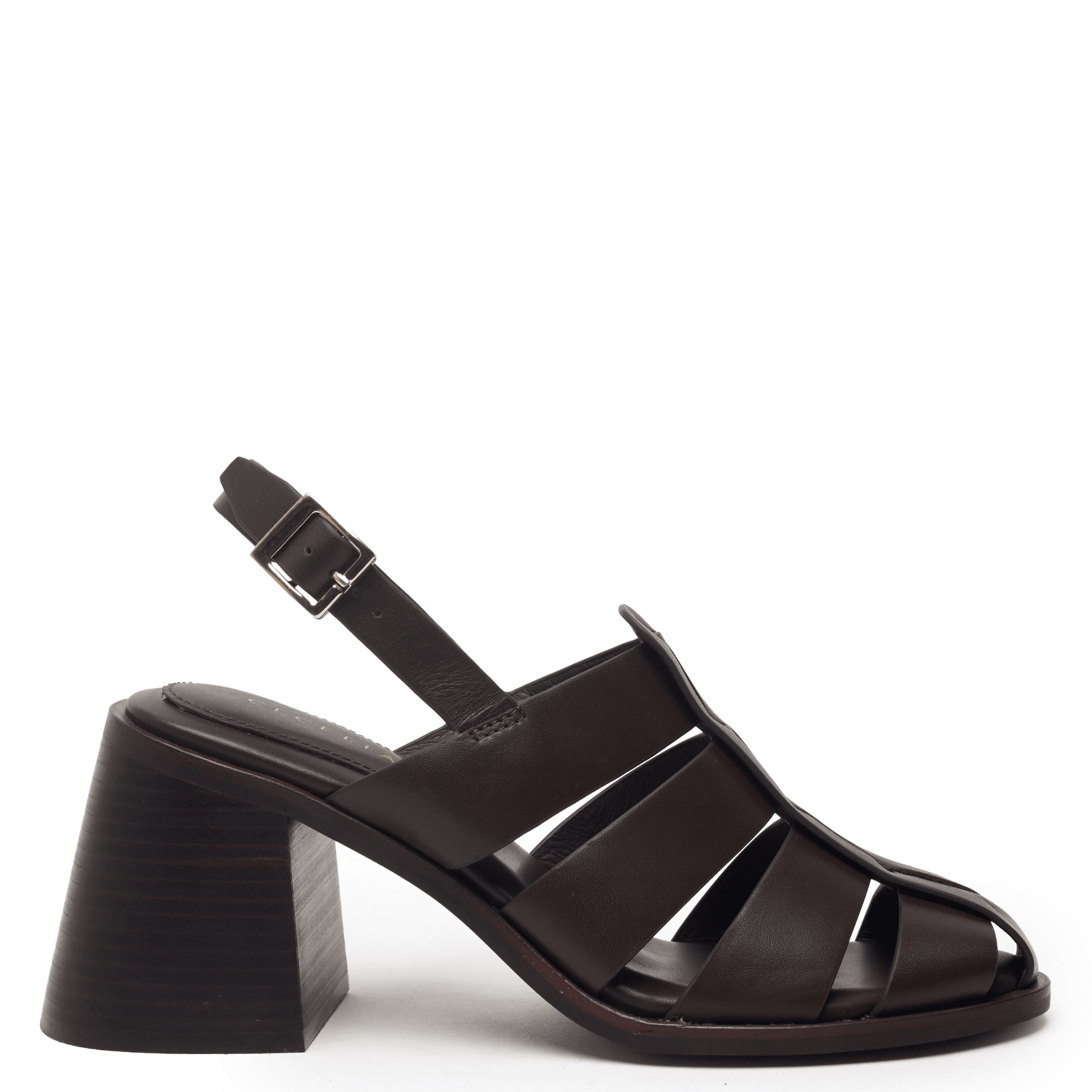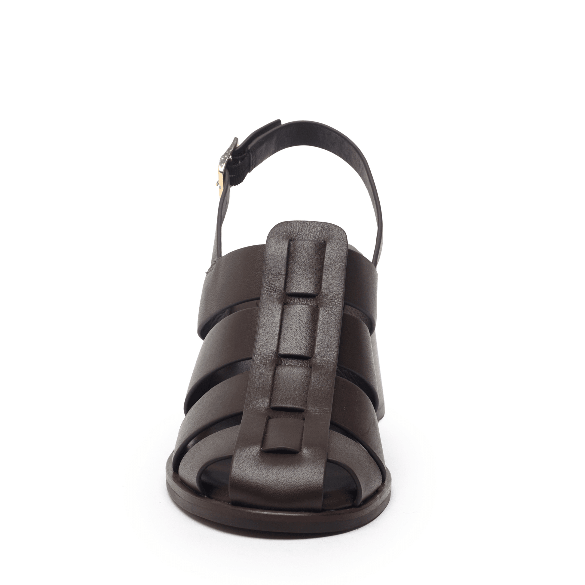 A fisherman-inspired silhouette adds timeless charm to a rich leather sandal set on a cushioned footbed and sculptural block heel