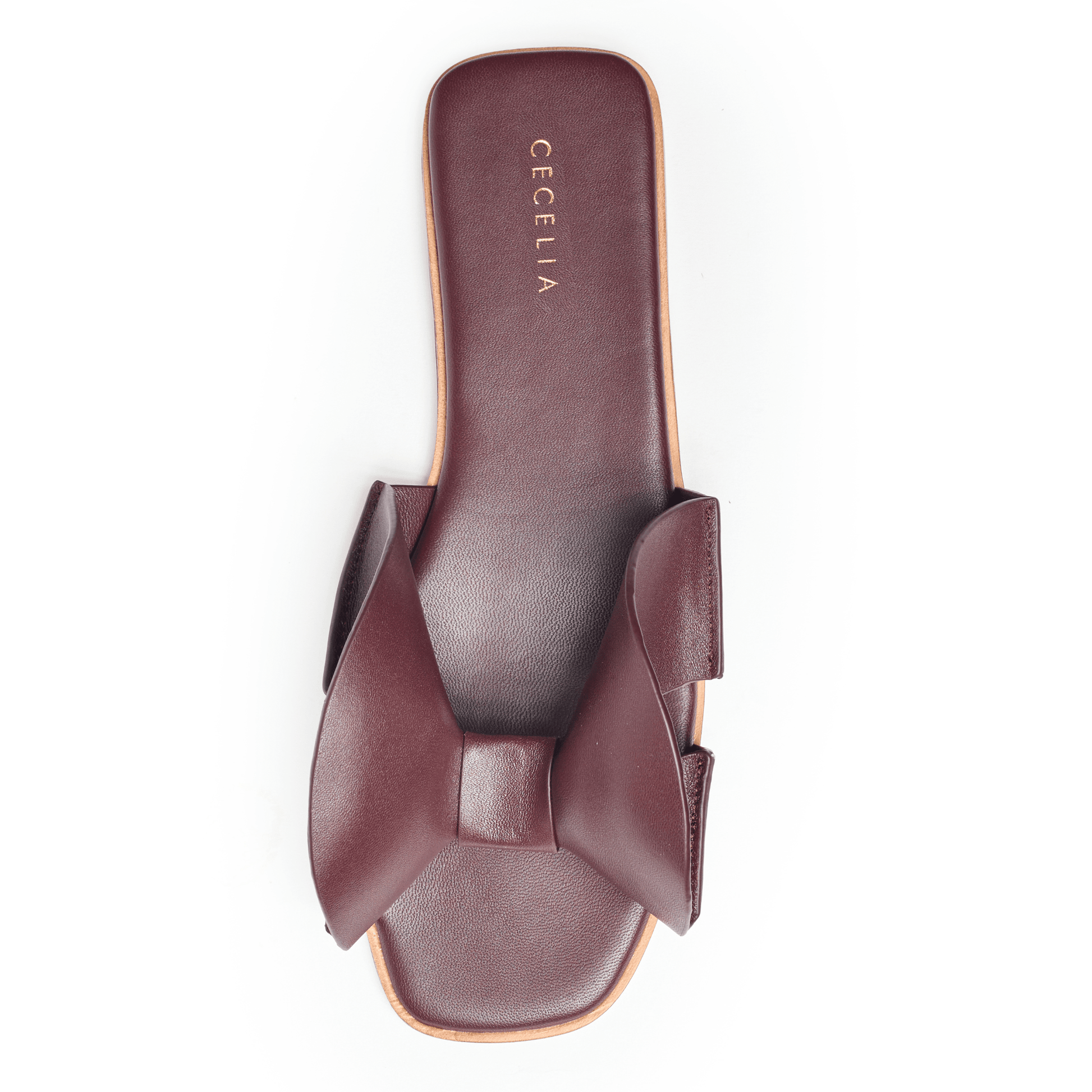 A voluminous vamp bow amplifies the toe strap of this chic sandal set on a square toe and cushioned footbed.